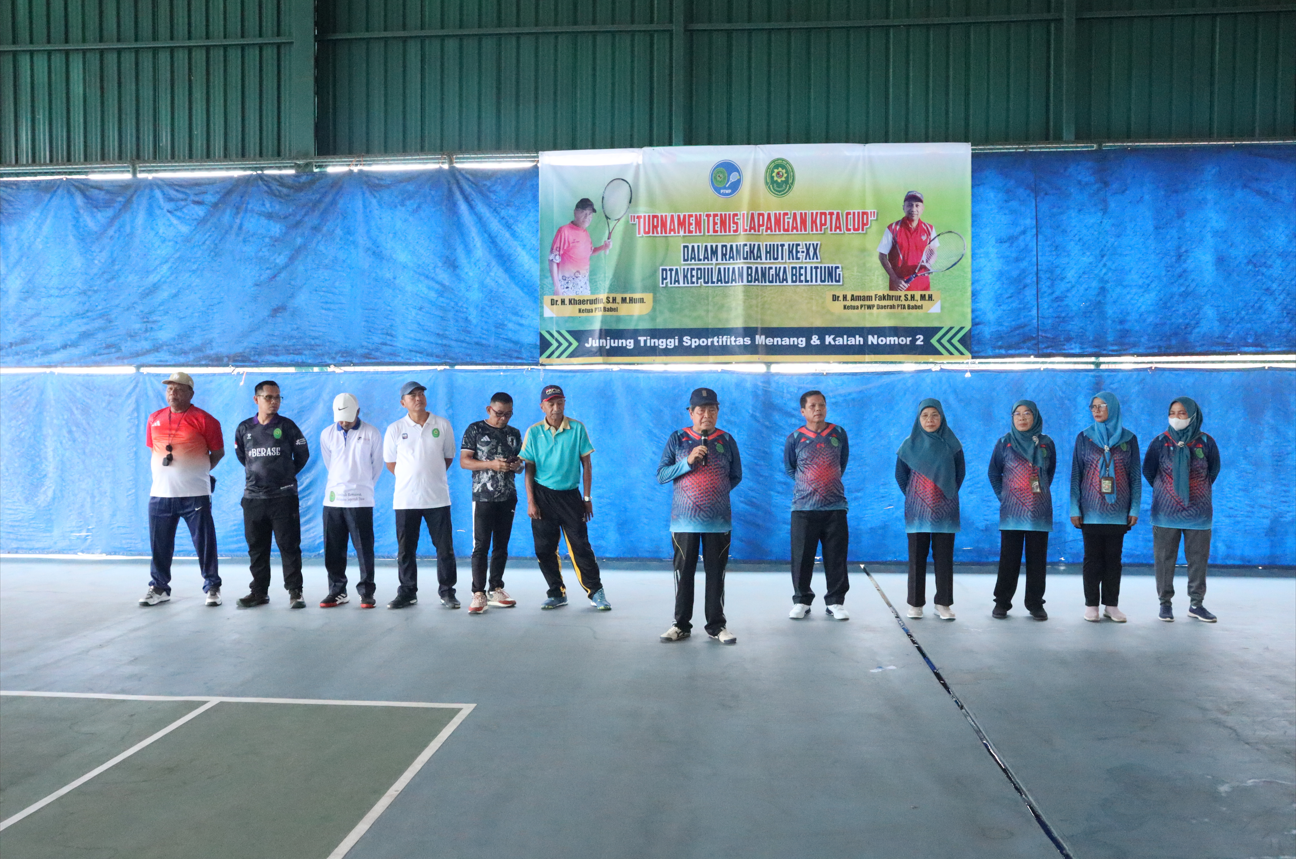 “Silahkan Tenis, namun Jangan Lupa Teknis” begitu isi dan pesan sambutan Ketua PTA Kepulauan Bangka Belitung dalam membuka kegiatan KPTA Babel CUP Tahun 2026 pada Jumat, 10 April 2026 di Lapangan Tenis Polda Bangka Belitung. Pesan tersebut sebagai motivasi bahwa tenis hendaknya menjadi olahraga yang bisa menjadi selingan dalam mendukung pelaksanaan tugas dan fungsi sebagai aparatur peradilan. Dalam sambutannya, Beliau juga menekankan kegiatan ini lebih dari sekedar kompetisi melainkan ajang untuk mempererat silaturahmi, kebersamaan, dan meningkatkan kesehatan fisik warga peradilan.
