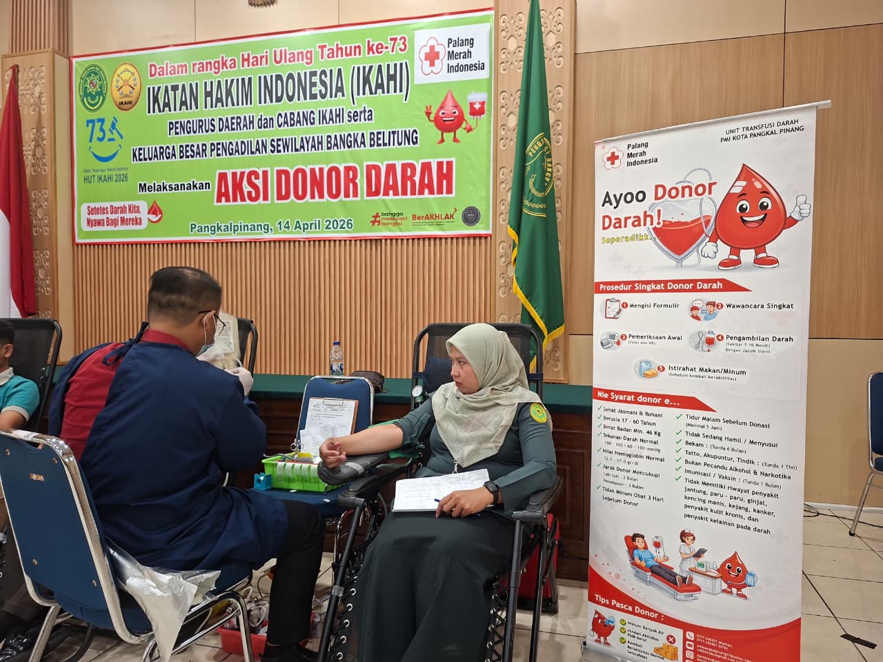 PANGKALPINANG, pta-babel.go.id — Dalam rangka memperingati Hari Ulang Tahun (HUT) ke-73 Ikatan Hakim Indonesia (IKAHI), satuan kerja peradilan di Provinsi Kepulauan Bangka Belitung menggelar aksi sosial donor darah sebagai bentuk kepedulian terhadap sesama..